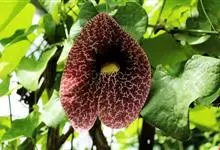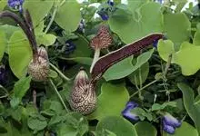 烟斗马兜铃是马兜铃科马兜铃属植物,多年生常绿蔓性藤本,全株无毛,叶互生,三角状心形或肾形,长3-8厘米,宽8-10厘米,顶端钝圆。春末至秋季开花,花单生于叶腋,花柄细长,无花萼花瓣之分,有喇叭状的花…全部>>