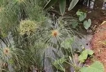 纸莎草是莎草科、莎草属的植物,具有粗壮的根状茎,高达2-3米,茎秆簇生,粗壮,直立,钝三棱形。叶退化呈鞘状,茎秆顶端着生总苞片,呈伞状簇生,总苞片叶状,披针形,顶生花序伞梗极多,细长下垂。瘦果灰褐色,…全部>>