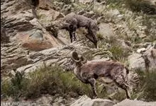 岩羊是偶蹄目牛科岩羊属哺乳动物。颜色与岩石相像,两性皆具角,雄羊角大而弯曲,角外表具不明显的横棱且体壮实,雌羊角短小;头较小,眼大,耳小,颏下无须;体背面为棕灰或石板灰色略有蓝色反光,…全部>>