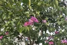 羊蹄甲,别名紫花羊蹄甲、玲甲花,是豆科羊蹄甲属的一种常绿乔木或灌木。树冠开展,枝桠低垂;树皮灰色至暗褐色,近光滑。枝幼时微被灰色短柔毛,后毛脱落;叶硬纸质,近圆形,基部浅心形,…全部>>