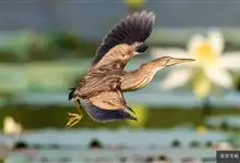 黄苇鳽是鹈形目鹭科苇鳽属鸟类。成鸟顶冠黑色;上体淡黄褐色,下体黄色,下颈基部和上胸具黑褐色块斑;黑色飞羽与黄白色覆羽成强烈对比;虹膜金黄色;眼先裸露呈黄绿色;喙峰黑褐色,…全部>>