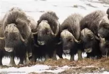 麝牛,是偶蹄目牛科麝牛属哺乳动物。麝牛体型大,但低矮粗壮,头大,吻部宽,眼小;雌雄均具角,四肢短粗,蹄宽大;毛被厚,极耐寒,尾短。雄麝牛在发情时会散发出一种类似麝香的气味,又称麝香牛。…全部>>