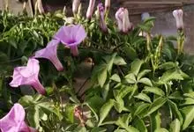 五爪金龙 Sweet),旋花科番薯属多年生缠绕草本植物。茎细长,有细棱;叶片为掌状;花冠紫红色、紫色或淡红色、偶有白色,漏斗状;蒴果近球形。花期5~12月。五爪金龙的叶子类似掌状,有5至7个裂痕,…全部>>