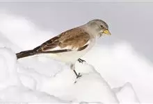 白斑翅雪雀:属典型的高原鸟类,共有7个亚种,体重30-34克,体长142-169毫米,较雪雀属中其他种体型稍大;雄鸟头灰,颏黑,翕和肩富于褐色;翼大部白色;除一对中央尾羽黑色外其余均为白色而具黑色羽端,…全部>>