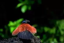 褐翅鸦鹃,是鹃形目鸦鹃科鸦鹃属的鸟类。褐翅鸦鹃的身体为黑色;头颈和胸带蓝紫色金属光泽并具黑亮的羽干纹,下胸至腹部泛金属绿光泽;两翼和肩部为棕栗色,外侧飞羽具暗色羽端,尾羽闪铜绿色光泽;虹膜赤红色,…全部>>