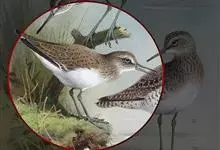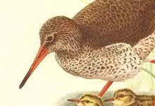 红脚鹬:体长28厘米,上体褐灰,下体白色,胸具褐色纵纹。飞行时腰部白色明显,次级飞羽具明显白色外缘。尾上具黑白色细斑。虹膜黑褐色,嘴长直而尖,基部橙红色,尖端黑褐色。脚较细长,亮橙红色,…全部>>