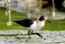 鹤鹬,是鹬科、鹬属的小型涉禽,体长26-33厘米,夏季通体黑色,眼圈白色,在黑色的头部极为醒目。背具白色羽缘,使上体呈黑白斑驳状,头、颈和整个下体纯黑色,仅两胁具白色鳞状斑。嘴细长、直而尖,…全部>>