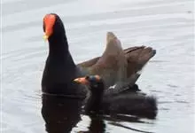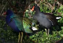 黑水鸡:是鹤形目、秧鸡科的鸟类,共有12个亚种。中型涉禽,体长24-35厘米。嘴长度适中,鼻孔狭长;头具额甲,后缘圆钝;嘴和额甲色彩鲜艳。翅圆形,第2枚初级飞羽最长,或第2枚和第3枚初级飞羽等长,…全部>>