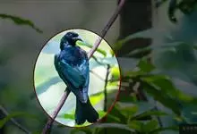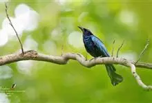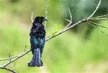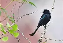 发冠卷尾是中型鸟类,体长28-35厘米。通体绒黑色缀蓝绿色金属光泽,额部具发丝状羽冠,外侧尾羽末端向上卷曲。栖息于海拔1500米以下的低山丘陵和山脚沟谷地带,多在常绿阔叶林、次生林或人工松林中活动。…全部>>