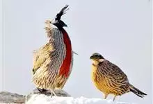 血雉雉科血雉属鸟类,别名血鸡、松花鸡,血雉的雄鸟大覆羽、尾下覆羽、尾上覆羽、脚、头侧、腊膜为红色,故称血雉。其别名甚多,各地皆异。在甘肃,因其胸侧和翅上覆羽沾绿,被称为“绿鸡”;因其羽毛形似柳叶,…全部>>