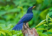 紫啸鸫是雀形目鹟科啸鸫属鸟类,又称黑雀儿,山鸣鸡、乌精。成鸟眼先及颏绒黑色;前额、头顶至背及肩羽和颈侧呈深紫蓝色,羽端具较密集的亮蓝色点斑;腰至尾上覆羽的深紫蓝色较暗而杂黑褐色,…全部>>