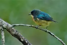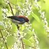 红胸啄花鸟:体重5-10克,体长60-92毫米。体形纤小。雄鸟上体呈辉亮的金属绿色;下体棕黄,胸部具一朱红色块斑,极易与其他啄花鸟区别。雌鸟上体呈橄榄绿,下体棕黄色。虹膜褐色,嘴褐黑色或角灰色,…全部>>