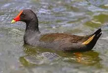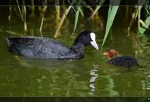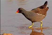 黑水鸡:是鹤形目、秧鸡科的鸟类,共有12个亚种。中型涉禽,体长24-35厘米。嘴长度适中,鼻孔狭长;头具额甲,后缘圆钝;嘴和额甲色彩鲜艳。翅圆形,第2枚初级飞羽最长,或第2枚和第3枚初级飞羽等长,…全部>>
