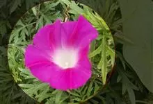 五爪金龙 Sweet),旋花科番薯属多年生缠绕草本植物。茎细长,有细棱;叶片为掌状;花冠紫红色、紫色或淡红色、偶有白色,漏斗状;蒴果近球形。花期5~12月。五爪金龙的叶子类似掌状,有5至7个裂痕,…全部>>