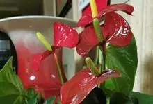 花烛,别名红鹅掌、红掌、安祖花等,为天南星科花烛属的一种多年生草本植物。其茎矮;叶互生,叶片革质,有光泽,阔心形、圆心形,先端钝或渐尖,基部深心形;肉穗花序有细长花序梗,佛焰苞深红色或橘红色,…全部>>