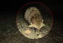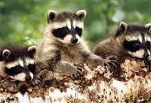 浣熊:食肉目、浣熊科的一种哺乳动物,成年体长40-65厘米,尾长20-40厘米,体重4-10千克,雄性稍大于雌性。体型较小。面部有黑色眼斑,形象滑稽,绰号“蒙面大盗”;尾部有5到7条黑白相间的环纹。…全部>>
