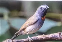 棕胸蓝姬鹟:属小型鸣禽,体长10-13厘米,体重6-10克,是一种体型很小的灰蓝及棕色鹟,雌雄羽色不同,雄鸟羽色艳丽,雌鸟羽色暗淡。雄鸟上体深蓝色,胸橙黄色,下腹灰白色。亚成鸟具褐色斑驳。…全部>>
