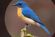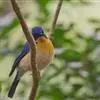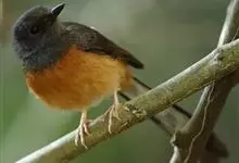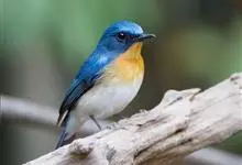山蓝仙鹟:小型鸟类,体长13-15厘米。雄鸟额基和眼先黑色,颏橙棕色,仅颏尖为蓝黑色,喉、胸、上腹和两胁亦为橙棕色,下体白色范围较小,仅局限于下腹和尾下覆羽。雌鸟上体少黄色,颏、喉、胸概为锈红色,…全部>>