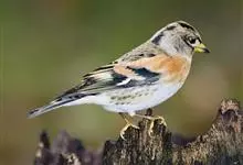 燕雀属小型鸟类,体长14-17厘米。嘴粗壮而尖,呈圆锥状。雄鸟从头至背辉黑色,背具黄褐色羽缘。腰白色,颏、喉、胸橙黄色,腹至尾下覆羽白色,两胁淡棕色而具黑色斑点。两翅和尾黑色,翅上具白斑。…全部>>