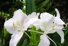姜花又名野姜花。是姜科姜花属的多年生草本植物,茎高1-2米;叶片长圆状披针形或披针形,叶面光滑,叶背被短柔毛;穗状花序顶生,椭圆形,花芬芳,白色;蒴果卵状三棱形,微黄绿色;种子鲜红色,具橘红色的假种皮。…全部>>