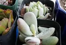 福娘为景天科银波锦属的肉质草本植物。对生的叶片呈短棒状,叶色灰绿,表覆白粉,叶缘外围镶着紫红色,叶片外形多有变化有短圆形、厚厚的方形等不同叶形;花期夏秋。福娘原产于非洲西南部的纳米比亚,…全部>>