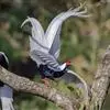 白鹇,是鸡形目雉科鹇属的一种留鸟。雄鸟上体白色并具黑色纹,下体黑色,头顶具黑色长羽冠,尾白而长;雌鸟体型较小,以橄榄褐色为主,下体具白色或皮黄色细纹;虹膜褐色,眼周具红色裸皮,喙黄色,脚鲜红色。…全部>>