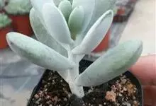 福娘为景天科银波锦属的肉质草本植物。对生的叶片呈短棒状,叶色灰绿,表覆白粉,叶缘外围镶着紫红色,叶片外形多有变化有短圆形、厚厚的方形等不同叶形;花期夏秋。福娘原产于非洲西南部的纳米比亚,…全部>>
