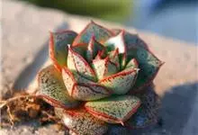 大和锦是景天科拟石莲花属的多肉植物。肉质叶排成紧密的莲座状,广卵形至散三角卵形,背面突起呈龙骨状,叶长3至4厘米,宽约3厘米,先端急尖。叶色灰绿,密布红褐色的斑纹。花序高约30cm。小花红色,上部黄色。…全部>>