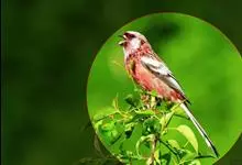 普通朱雀是雀形目雀科朱雀属鸟类,又名红朱雀、马料、青麻料。雄鸟上体红色,下体淡红色;头部、喉部、胸部及腰部亮红色;背部褐色染红色;两翼及尾黑褐色,羽缘染红色。雌鸟上体橄榄褐色,下体近白色,…全部>>