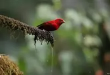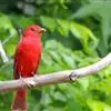 血雀雀科朱雀属鸟类,体重36-49克;体长155-182毫米。雄鸟除眼先、翼与尾为黑色外,通体为鲜红色;嘴鲜黄;雌鸟暗橄榄绿色,羽端较淡或带黄色;腰鲜黄;嘴较暗。虹膜褐色;嘴黄色;腿和脚褐色。…全部>>