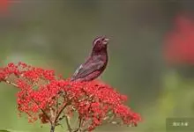 红眉朱雀:体长15厘米,是一种中等体型的朱雀。上体褐色斑驳,眉纹、脸颊、胸及腰淡紫粉,臀近白。雌鸟无粉色,但具明显的皮黄色眉纹。雄雌两性均甚似体型较小的曙红朱雀,但嘴较粗厚且尾的比例较长。…全部>>