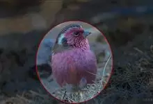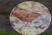 喜马拉雅白眉朱雀:小型鸟类,体长15-17厘米,体重24-35克。额基、眼先深红色,前额和一条长而宽阔的眉纹珠白色沾有粉红色并具丝娟光泽,在暗色的头部极为醒目。头顶至背棕褐或红褐色、具黑褐色羽干纹,…全部>>