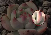三日月美人叶子比较扁,有透明感,形状像星美人和青星美人,比较容易和其他美人多肉区分开来,三日月美人最突出特点是:叶顶端的尖非常突出、显眼。全部>>