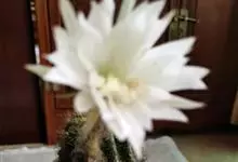 仙人球花 仙人掌科,仙人球属。植株单生或成丛。幼株球形,老株长成圆筒状,高可达75厘米,直径12-15厘米。球体暗绿色,具棱11-12。刺锥状,黑色,长1-1.5厘米。花着生于球体侧方,大型嗽喇叭状…全部>>