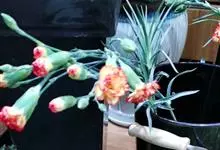 康乃馨:是石竹科、石竹属多年生草本植物,是多种石竹属园艺品种的通称。为多年生草本植物,株高70-100厘米,基部半木质化。整个植株被有白粉,呈灰绿色。茎干硬而脆,节膨大。叶线状披针形,全缘,叶质较厚,…全部>>