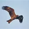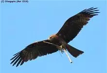 黑鸢:是鹰科、鸢属的一种中型猛禽,共有5个亚种。体长54-69厘米。上体暗褐色,下体棕褐色,均具黑褐色羽干纹,尾较长,呈叉状,具宽度相等的黑色和褐色相间排列的横斑;飞翔时翼下左右各有一块大的白斑。…全部>>