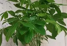 瓜栗 Walp. ),俗称发财树,木棉科小乔木,高4-5米,树冠较松散,幼枝栗褐色,无毛。小叶具短柄或近无柄。花单生枝顶叶腋;花梗粗壮,被黄色星状茸毛,脱落;萼杯状,近革质;花瓣淡黄绿色,狭披针形…全部>>