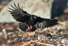 红嘴山鸦,是脊索动物门鸟纲雀形目鸦科鸟类。红嘴山鸦的成鸟通体羽毛纯黑色具有蓝色金属光泽,翼和尾泛有蓝绿色金属光泽;虹膜暗褐色,喙较为尖细,并且呈镰状下弯,喙和脚朱红色。…全部>>