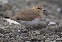 东方鸻:属小型涉禽。体重80-95克,体长220-255毫米。在夏季,前额、眉纹和头的两侧白色,头顶、背褐色或沙褐色。颏、喉白色,前颈棕色,胸棕栗色,其下有一黑色胸带紧靠其后,其余下体白色。嘴细长,…全部>>