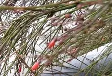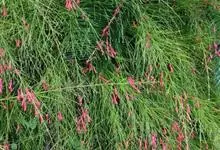爆仗竹是车前科爆仗竹属植物。直立、木贼状半灌木,高可达1米,全体无毛。茎分枝轮生,细长,具棱。叶轮生,退化为披针形的鳞片。聚伞圆锥花序狭长,总花梗长达3厘米,苞片钻形;花梗长近1厘米;花萼小,深裂过半,…全部>>