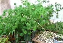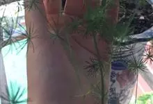 蓬莱松是天门冬科、天门冬属多年生丛生草本植物。宿存,圆柱形肉质根,纵截面为绿色和表面灰色。植株高可达3米。茎呈圆柱形或近四边形,底部木质化,具有灰色或灰褐色。幼嫩的茎在每个节上都被紫绿色鳞片包,…全部>>