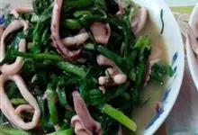 爆炒鱿鱼,是用鱿鱼制作的一道家常菜。鱿鱼有少量的脂肪和碳水化合物,含有大量的胆固醇,…全部>>