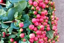 红果金丝桃,园艺栽培品种,属于被子植物门木兰纲金虎尾目金丝桃科金丝桃属。学名:Hypericum × inodorum ‘Excellent Flair’常绿灌木,高1.2米。单叶对生,无柄,椭圆形,…全部>>