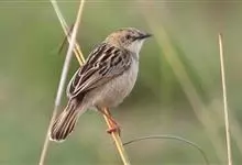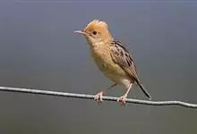 金头扇尾莺体小而具褐色纵纹的莺。嘴细长,略向下弯;翼短,体型娇小,尾长。下体皮黄,喉近白,尾深褐,尾端皮黄。雌雄羽色相近,羽色单调。繁殖期雄鸟顶冠亮金色,腰褐色。雌鸟及非繁殖期雄鸟头顶密布黑色细纹,…全部>>