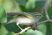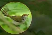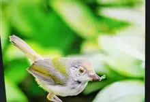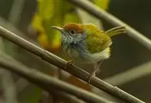 普通缝叶莺,是雀形目鹅科莺亚科缝叶莺属一种。体长10-14厘米,体重7-10克,雄鸟前额棕红,头顶至枕棕橄榄褐,上体橄榄绿染黄,飞羽及尾羽暗褐;繁殖期雄鸟的中央尾羽特形延长,下体淡皮黄白色。…全部>>