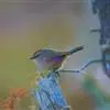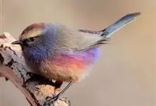 花彩雀莺:体长9-12厘米,是一种毛茸茸偏紫色的雀莺。顶冠棕色,眉纹白。尾长,羽毛松软。前额有一宽阔的眉纹淡黄色,头顶栗色或棕红色,有的具紫蓝色光泽。背灰色,腰和尾上覆羽辉紫蓝色,飞羽灰褐色。…全部>>