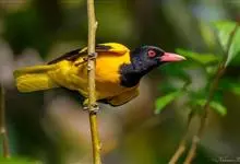 黑枕黄鹂又称黄莺、黄鹂、金衣公子等,是雀形目黄鹂科黄鹂属鸣禽。体长23~27厘米,嘴略下弯,粉色;雄鸟整体主要呈鲜明的黄色,黑色过眼纹在额和枕后相连,且在枕后较粗,形成一围绕头顶的黑色宽带;飞羽黑色,…全部>>
