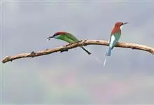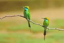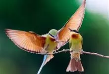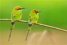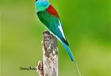 绿喉蜂虎是佛法僧目、蜂虎科的小型鸟类,共有9个亚种。身长22-25厘米,翼展29-30厘米,体重15-20克。喉绿色,额部、头顶至上背为锈红色,其余上体均为亮绿色。中央尾羽延长且端段狭细,…全部>>