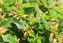 猩猩草:常绿或半常绿灌木,盆栽时株高0.5米-2米,在亚热带地区可长到6米以上。茎直立而光滑,单叶互生,卵状椭圆形至阔披针形,具不规则的深缺刻。长10-15厘米。花小,有蜜腺,排列成密集的伞房花序。…全部>>