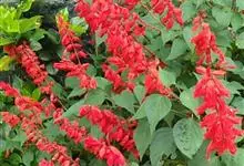一串红,又称爆仗红、象牙红,为唇形科鼠尾草属植物。花序修长,色红鲜艳,花期又长,适应性强,为中国城市和园林中最普遍栽培的草本花卉。原产巴西、南美洲。喜温暖和阳光充足环境。不耐寒,耐半阴,忌霜雪和高温,…全部>>